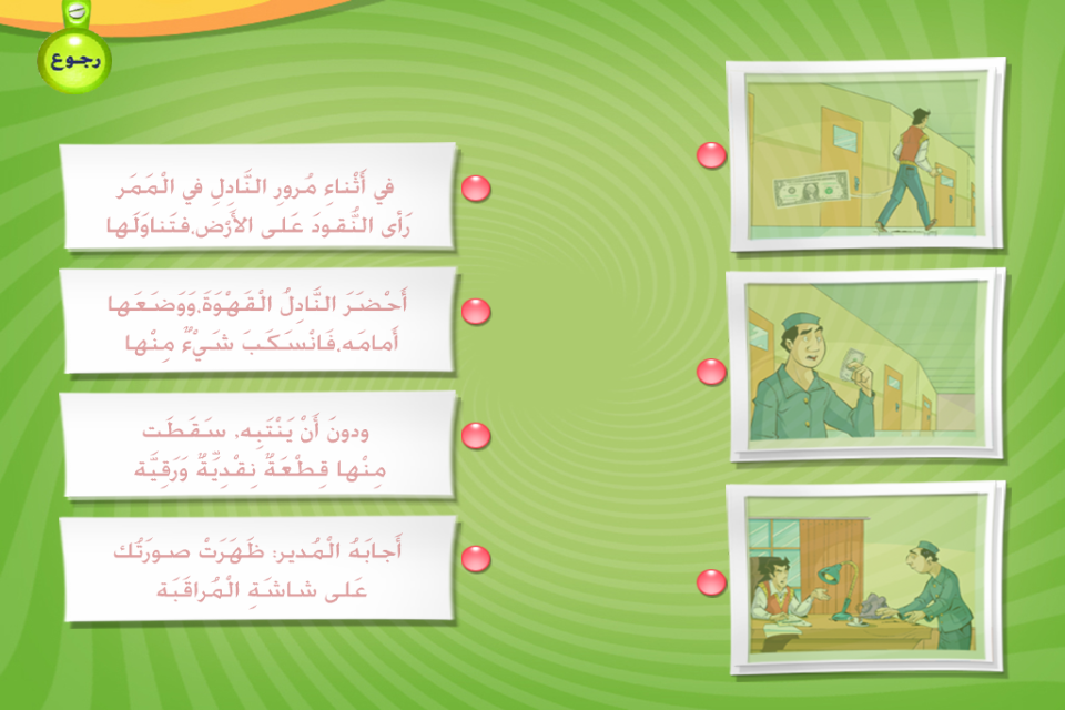 الأهداف : الخصائص: تضمن مجموعة من الألعاب اللغوية مثل (التلوين ،التوصيل ، الذاكرة، البازل، تجميع الصور) وتتضمن ايضا أنشودة مسجلة بصوت أطفال (كورال ) تُعبر عن مضمون ومحتوى القصة |
