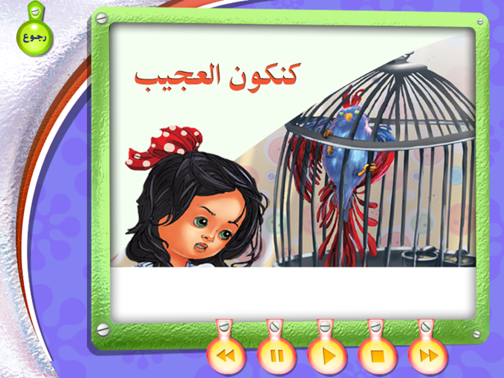 الأهداف : تنمية العلاقة الطيبة بين الجيران. الخصائص: تضمن مجموعة من الألعاب اللغوية مثل (التلوين ،التوصيل ، الذاكرة، البازل، تجميع الصور) وتتضمن ايضا أنشودة مسجلة بصوت أطفال (كورال ) تُعبر عن مضمون ومحتوى القصة |