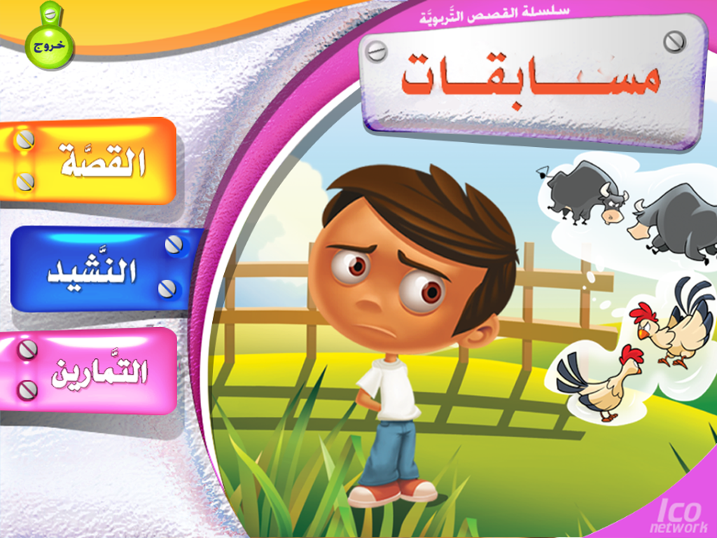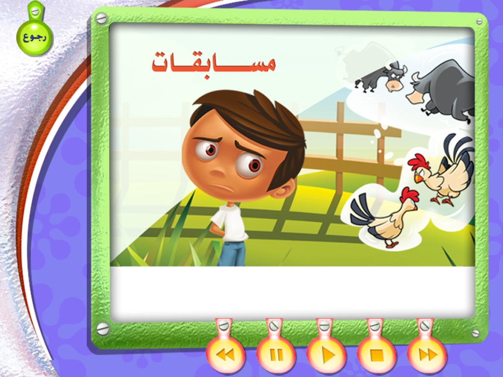 الأهداف : 1. الرفق بالحيوان. الخصائص: تضمن مجموعة من الألعاب اللغوية مثل (التلوين ،التوصيل ، الذاكرة، البازل، تجميع الصور) وتتضمن ايضا أنشودة مسجلة بصوت أطفال (كورال ) تُعبر عن مضمون ومحتوى القصة |